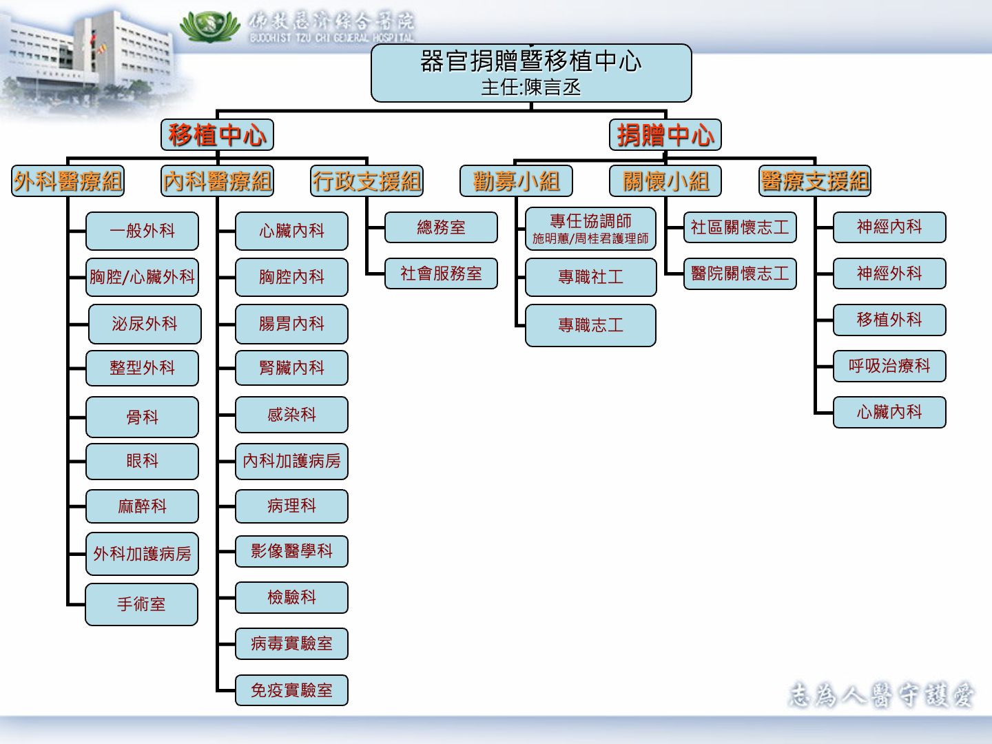 慈濟器官移植暨捐贈中心組織架構:
